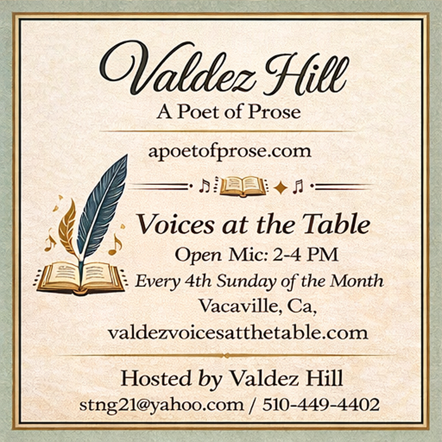 Exploring the Depth and Richness of Human Emotions and Experiences Through Poetic Words Voices at the Table- Black History Celebration Scroll Down to View the MP3/Video Performance by Valdez Hill Voices at the Table- Black History Celebration Read More When TRUTH is FEARED More THAN WAR- March 2026 Read More Looking Back Moving Forward Read More Voices at the Table- Newletter Read More View more 00:00