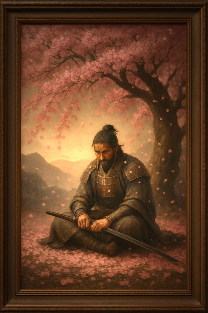 Renji Hitsugaya, Ichigo Kurosaki, and an unnamed Daimyo who grapple with the burdens of honor, duty, and the toll of endless warfare. It contrasts the beauty and transience of cherry blossoms (sakura) with the warrior’s internal struggles, emphasizing the longing for peace and a simpler life.