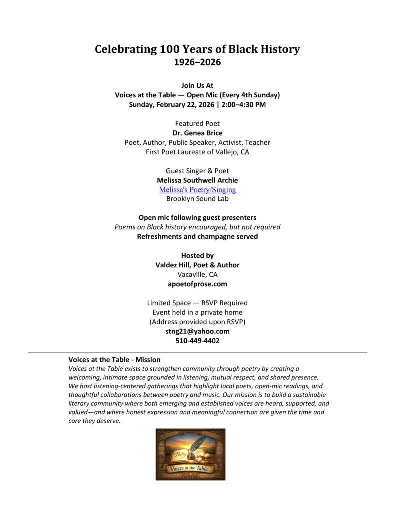 Read more articles Previous PostWhen TRUTH is FEARED More THAN WAR- March 2026 Next PostVoices at the Table March Newsletter You Might Also Like A Piece Of You, A Love Poem November 7, 2025 Duet at the Edge of the Abyss When Life Raised Its Baton Against Death November 14, 2025 First Haiku: Winter Collection, Vol. 1, 2026 December 2, 2025